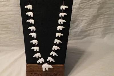 VINTAGE POLAR BEAR CARVED STONE FETISH NECKLACE - Image 1 of 4