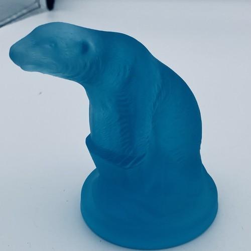Blue Satin Glass Polar Bear Figurine Paperweight 4.5 Inches