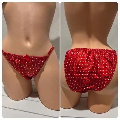 Double SILK Gusset String Bikini Panty Wet Look Polka Dot Print...