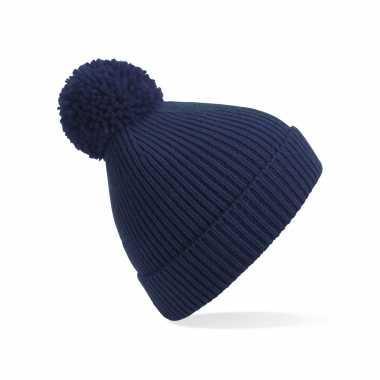 Kinder wintermuts met pom pom donkerblauw | Wintermuts-kopen.nl