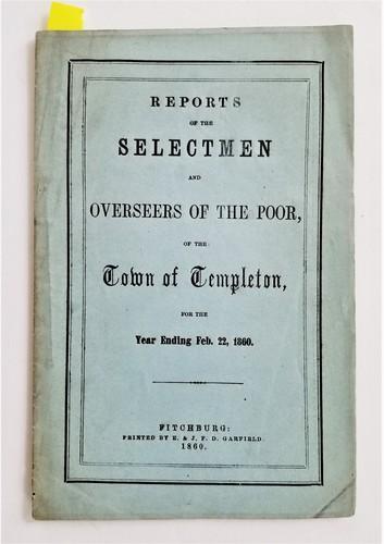1860 antique TEMPLETON MA history SELECTMEN REPORT overseers...
