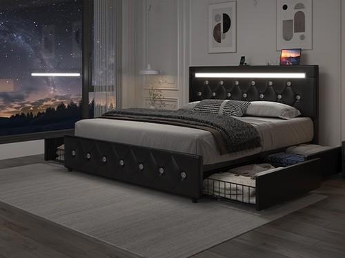 Upholstered Platform Bed with 4 Sliding Storage Drawers...