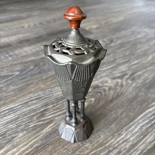 Vintage 8 Inch Brass Incense Burner with Lid - Possibly Arabic