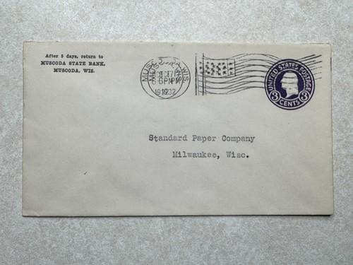 Envelope Postal Cover Muscoda State Bank, Muscoda WI EN175 1932