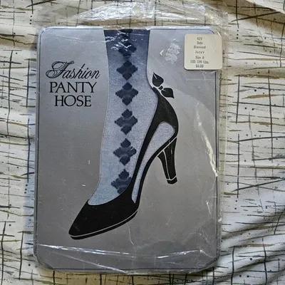 Vtg 80s Preppy Diamond Stitch Panty Hose Sheer Stockings...