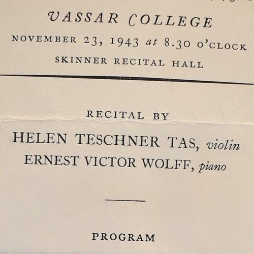 1943 Helen Teschner Tas Ernest Victor Wolff Recital Program...