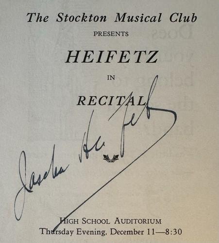 Jascha Heifetz Autographed Program, violinist, Stockton...