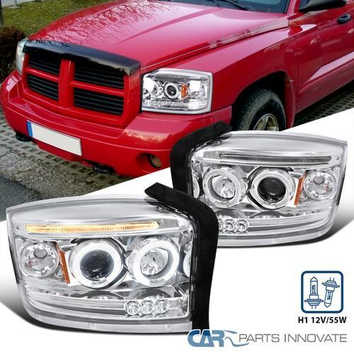 Fit 05-07 Dodge Dakota Clear LED Strip Halo Projector...