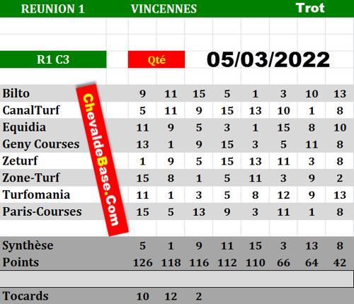 Pronostic quinté Réunion 1 course 3 de Vendredi 11/03/2022...