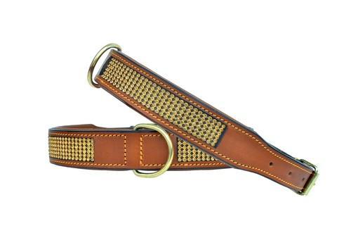 Leather Dog Collar Padded Golden Rhinestones Heavy Duty for...
