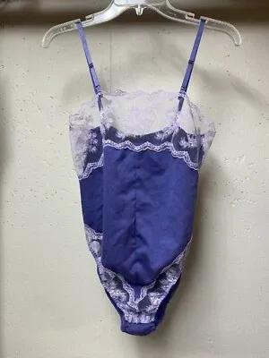 Vtg Teddy Bodysuit Romper Lace Snap Lingerie Purple Medium...