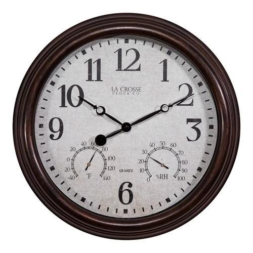 15 In. Brown Indoor/Outdoor Quartz Wall Clock with Thermometer...