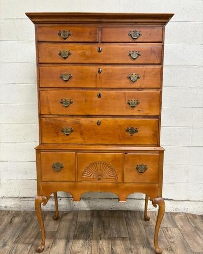 Antique Flat Top Curly Maple or Tiger Maple Queen Anne Highboy...