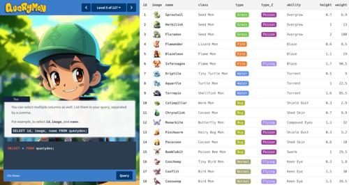 Querymon - A game for learning SQL database queries | Codepip