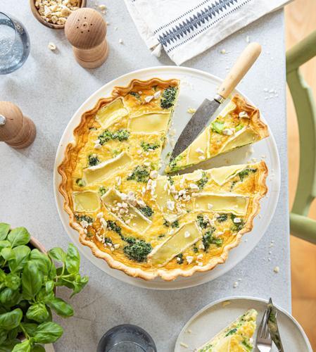 Vegetarische quiche met spinazie, pecannoten en camembert...