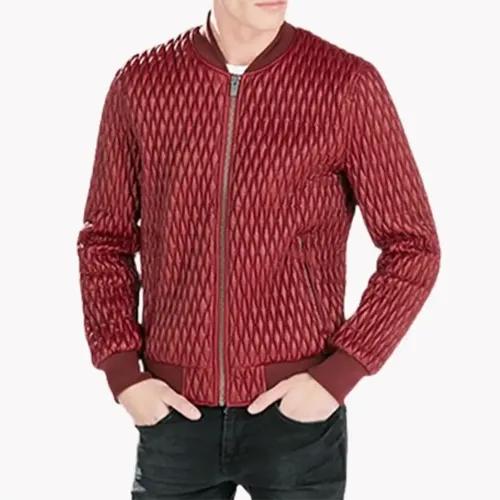 Danny Red Quilted Bomber Leather Jacket - Jacketpop