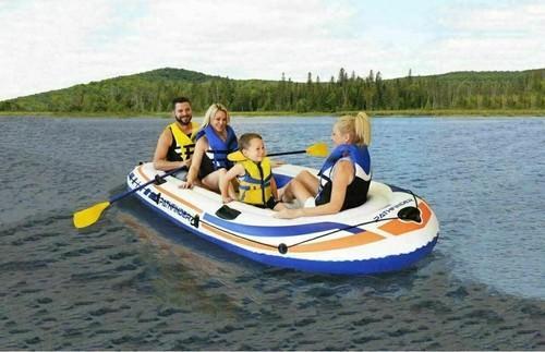 Pathfinder 4 Person Inflatable Raft Boat Pump 2 Oars Kayak...