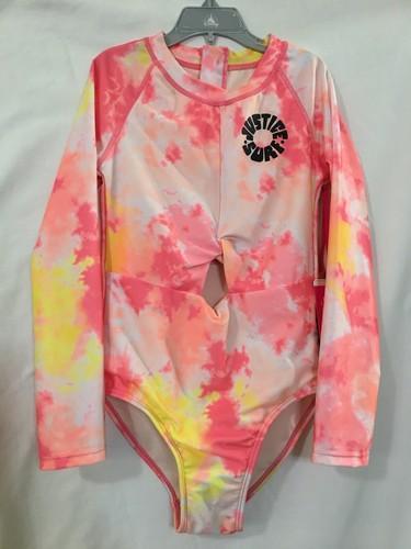New Justice Girls Rash Guard Swimsuit 1 Piece Pink Tie Dye U pick