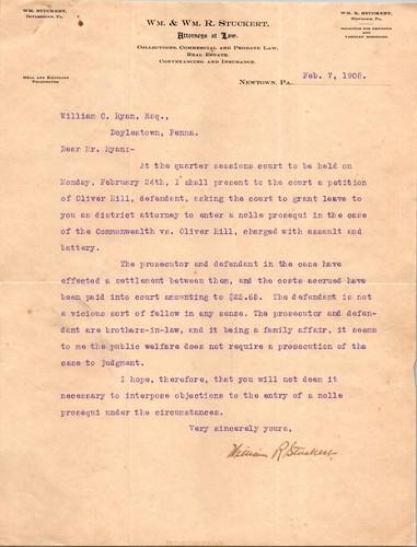 William Stuckert Newtown PA 1908 Letterhead Attorney Client...