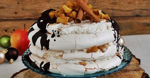 Pavlova mézes-fűszeres karamellizált almával recept