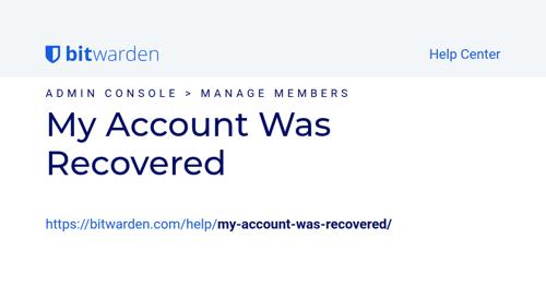 My Account Was Recovered | Bitwarden