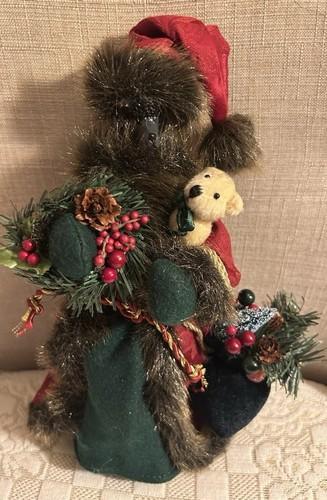 Vintage Black Poodle Dog Santa Tree Topper Red Robe Teddy Bear...