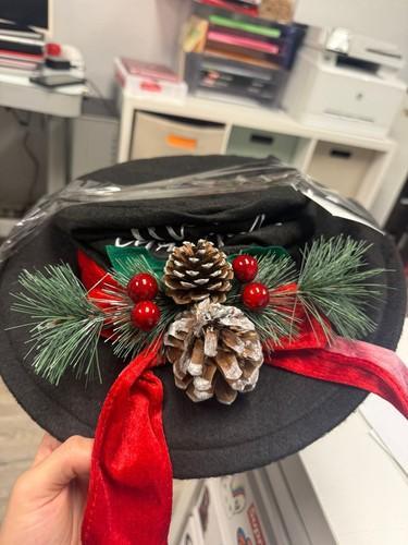 Black Hat with Red Ribbon and Pinecones Tree Topper