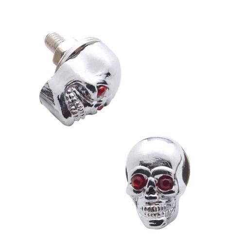 2 Custom Skull Red Gem Eyes License Plate Frame Bolts...