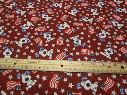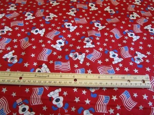 Red Patriotic Woof Dog with American Flags Cotton Fabric By The...
