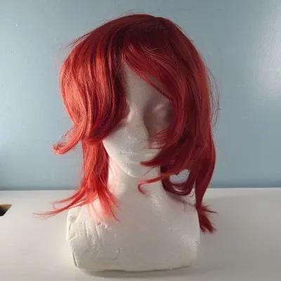 Red Medium Length Hair Wig Bangs Cosplay Costume Anime - Image...