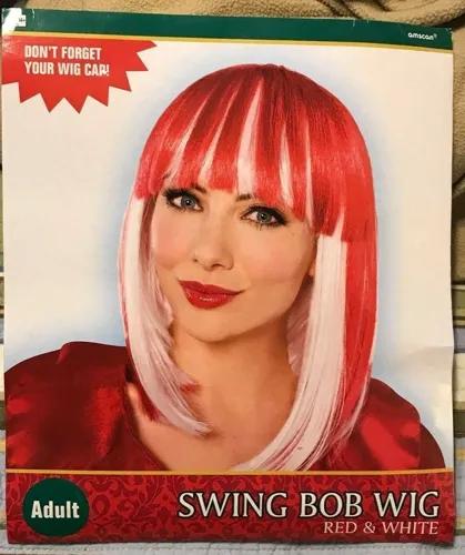 NEW - Adult Swing Bob Red & White Wig Bangs Sexy Hair Costume...