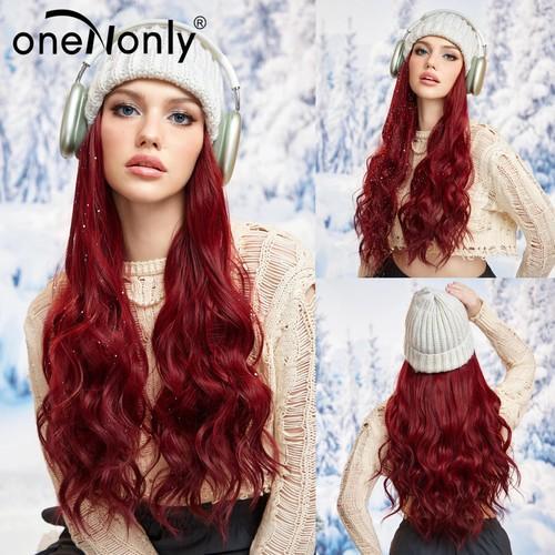 Red Wavey Hat wigs Cap Synthetic Hair Wigs Daily Party Use High...