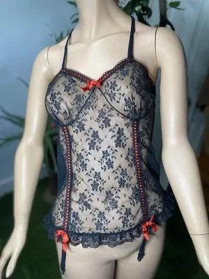 Movie Star black floral lace teddy camisole W/ red ribbon...