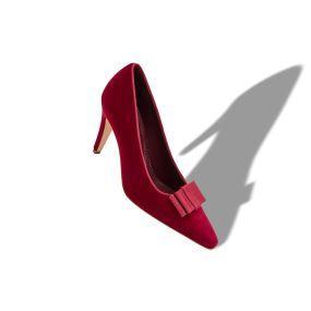 REVA | Dark Red Velvet Embellished Pumps | Manolo Blahnik