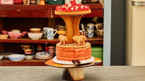 Draaimolentaart met red velvet en rabarber - Heel Holland Bakt