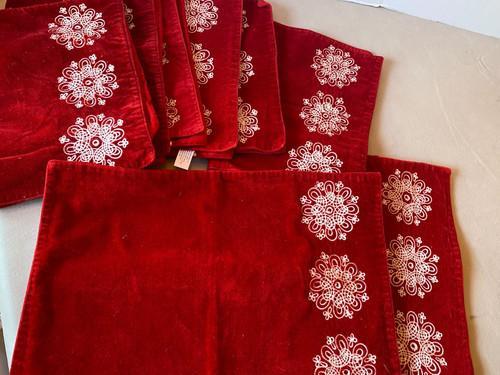 8X Red Velvet Placemats Embroidered Snowflakes Christmas...
