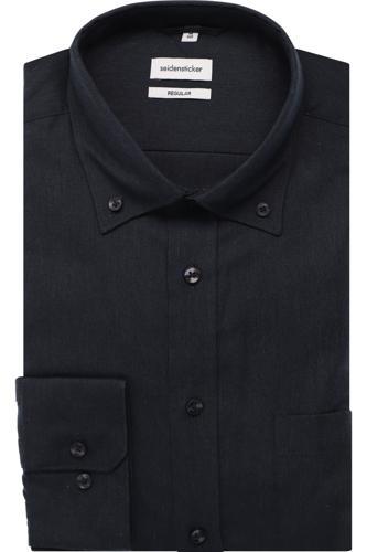 Seidensticker Regular Fit Overhemd zwart, Effen | Overhemden.com