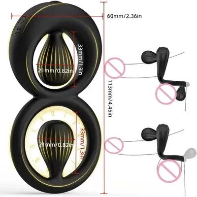 Vibrating Penis Sleeve Remote Control Dual Cock Ring Male...