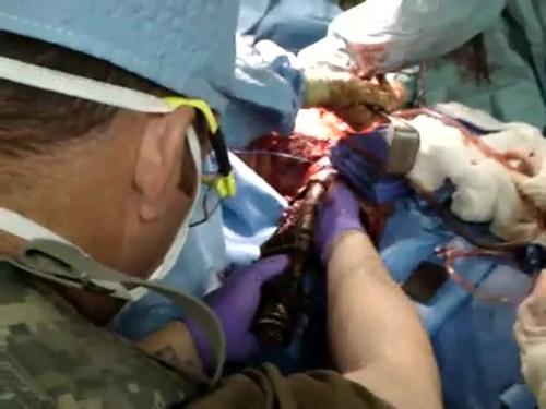 RPG projectile being removed from a soldier's body 2013