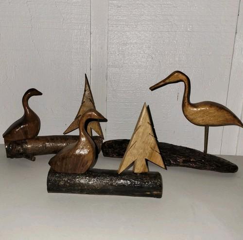 Reserved For Janet - Vintage Hand Carved Wood Birds