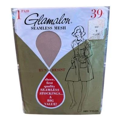 Vintage Glamalon Seamless Mesh Stockings Mist Size 9 Run Resist...