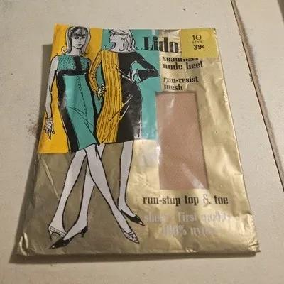 1 PAIR Lido Run-Resist Nylon Stockings Sz 10 Color Spice 1960s...