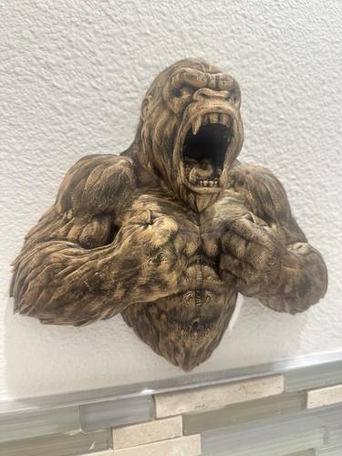 Roaring Gorilla Wall Mount Sculpture 9x9x3 Animal Head Jungle...