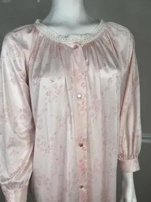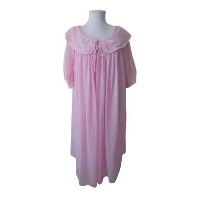 VTG Pink Lace Trim Nylon 2 pc Nightgown & Robe Peignoir Set Sz...