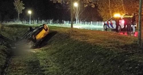 Auto ondersteboven in Roermond, bestuurder spoorloos - L1 Nieuws