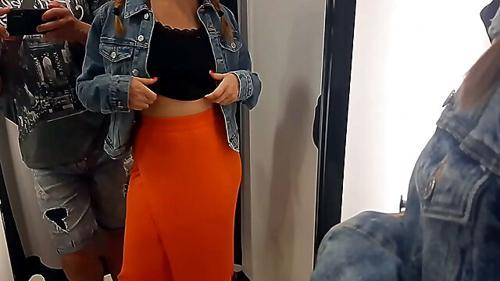 Amateur girl handjob and blowjob in changing room at the store...