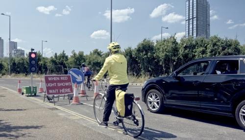 Vier Radfahrende, ein Autofahrer und eine rote Ampel – Das...