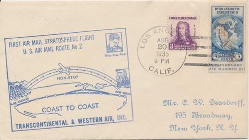 First Flight Air Mail Stratosphere Route No. 2 Coast Carried by...