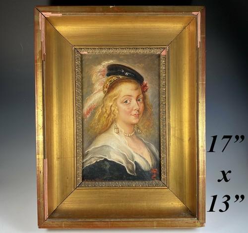 Antique Oil Painting Portrait on Board, After Rubens Young...