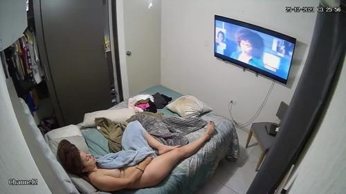 Reallifecam - Diane lies in bed, rubs her pussy with a small...